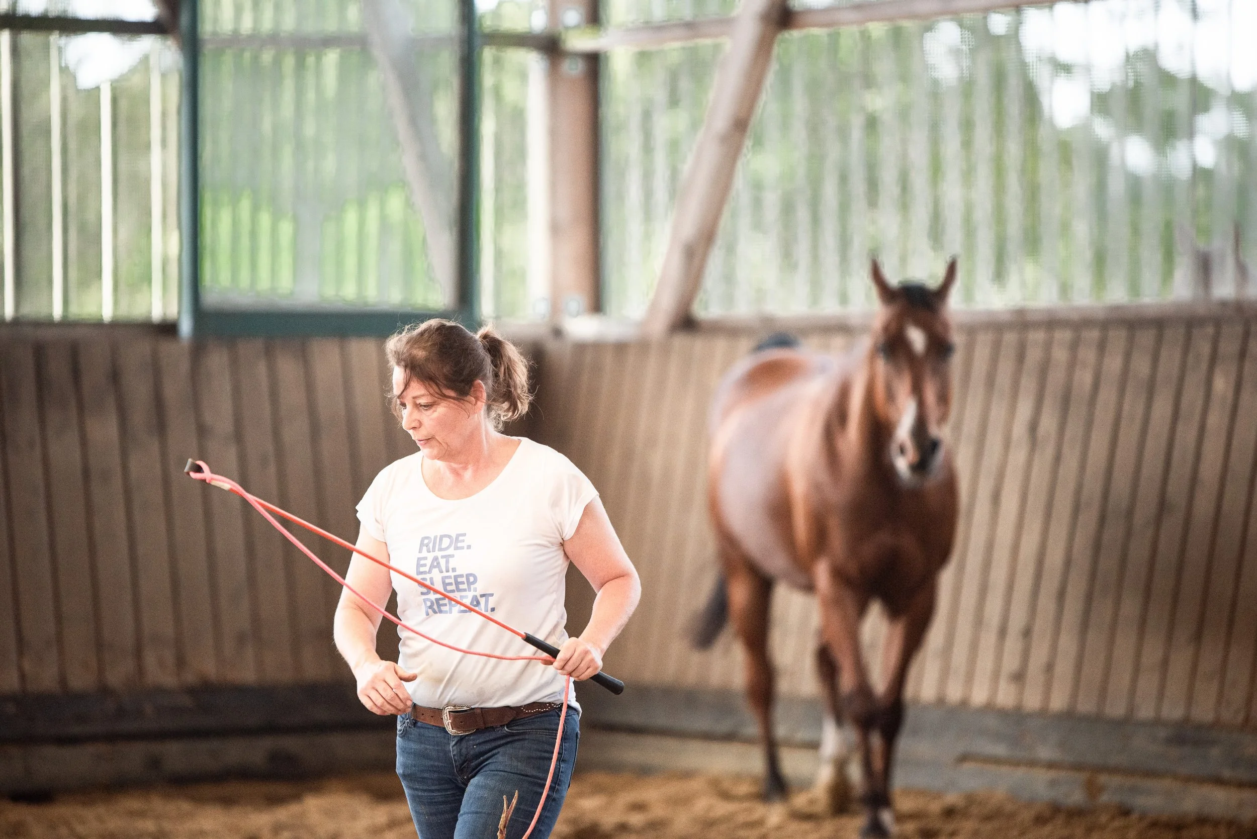 Wir erlernen das Zusammenspiel zwischen Desensibilisierung und Sensibilisierung für ein besseres Verständnis zwischen Pferd und Mensch (auf was soll das Pferd reagieren und auf was nicht)